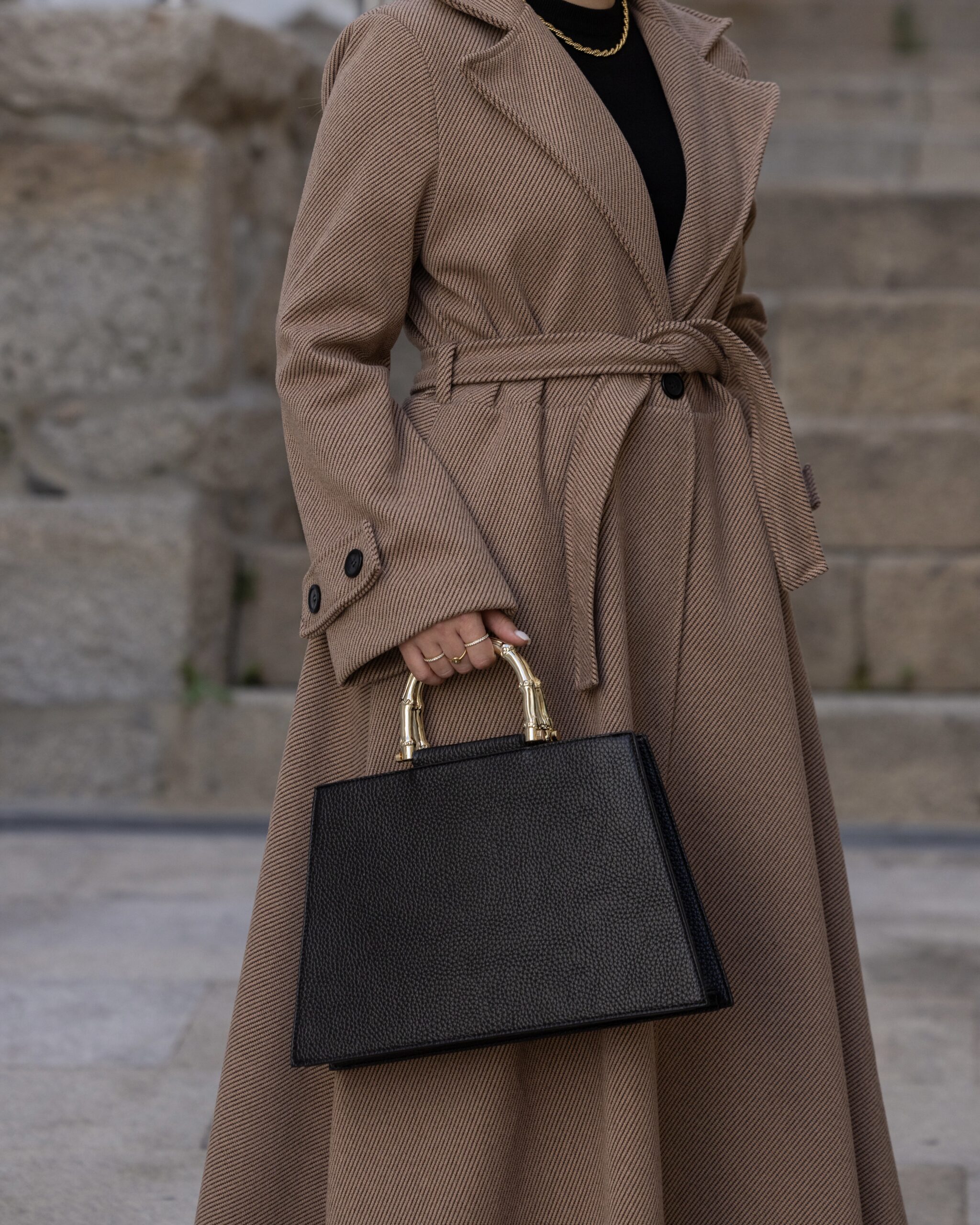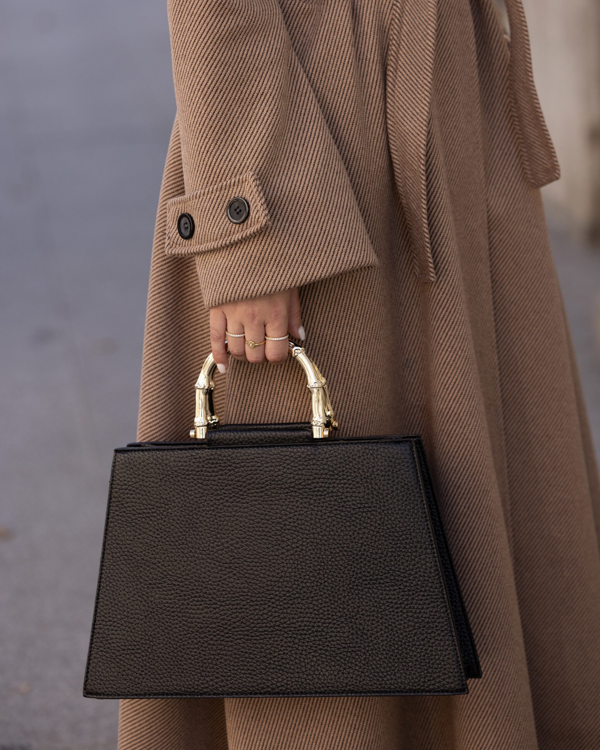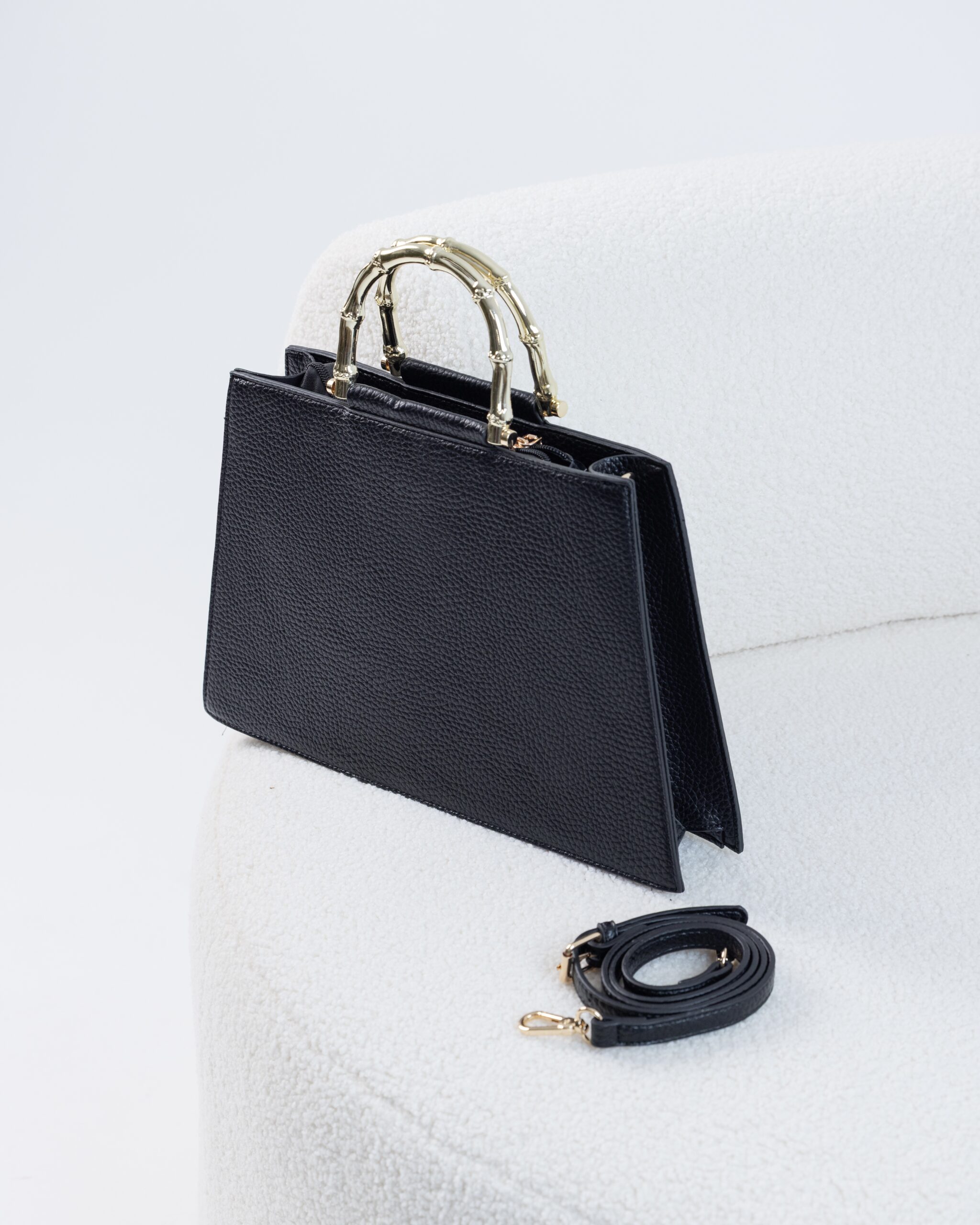 Mala grande com pega dourada.