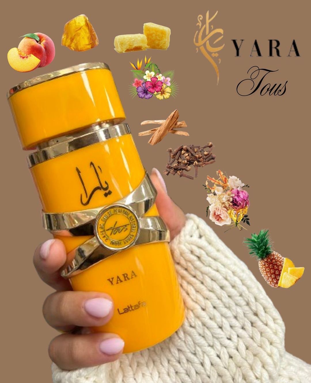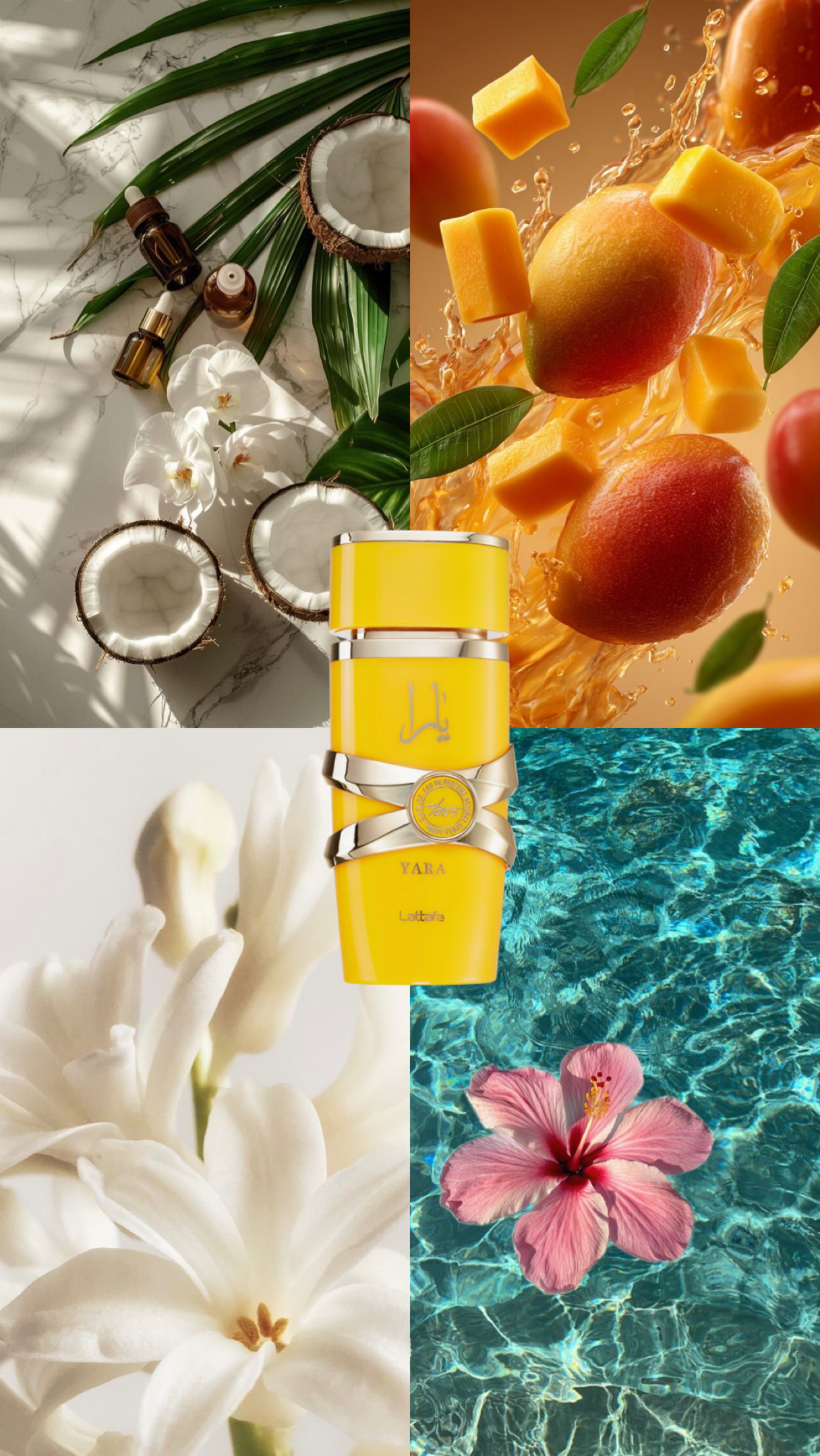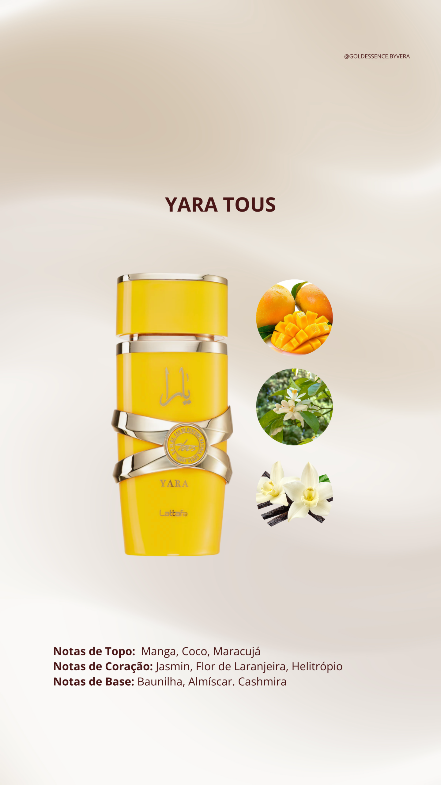 O perfume Lattafa Yara Tous Eau de Parfum tem um cheiro tropical, doce e cremoso.